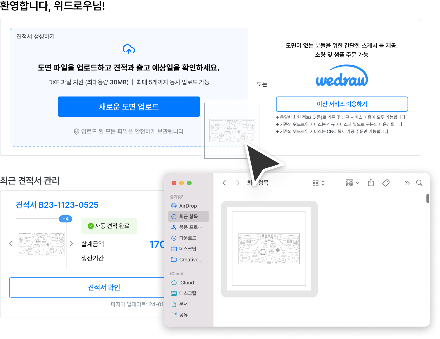 도면을 업로드하고 새로운 가공서비스를 경험하세요!