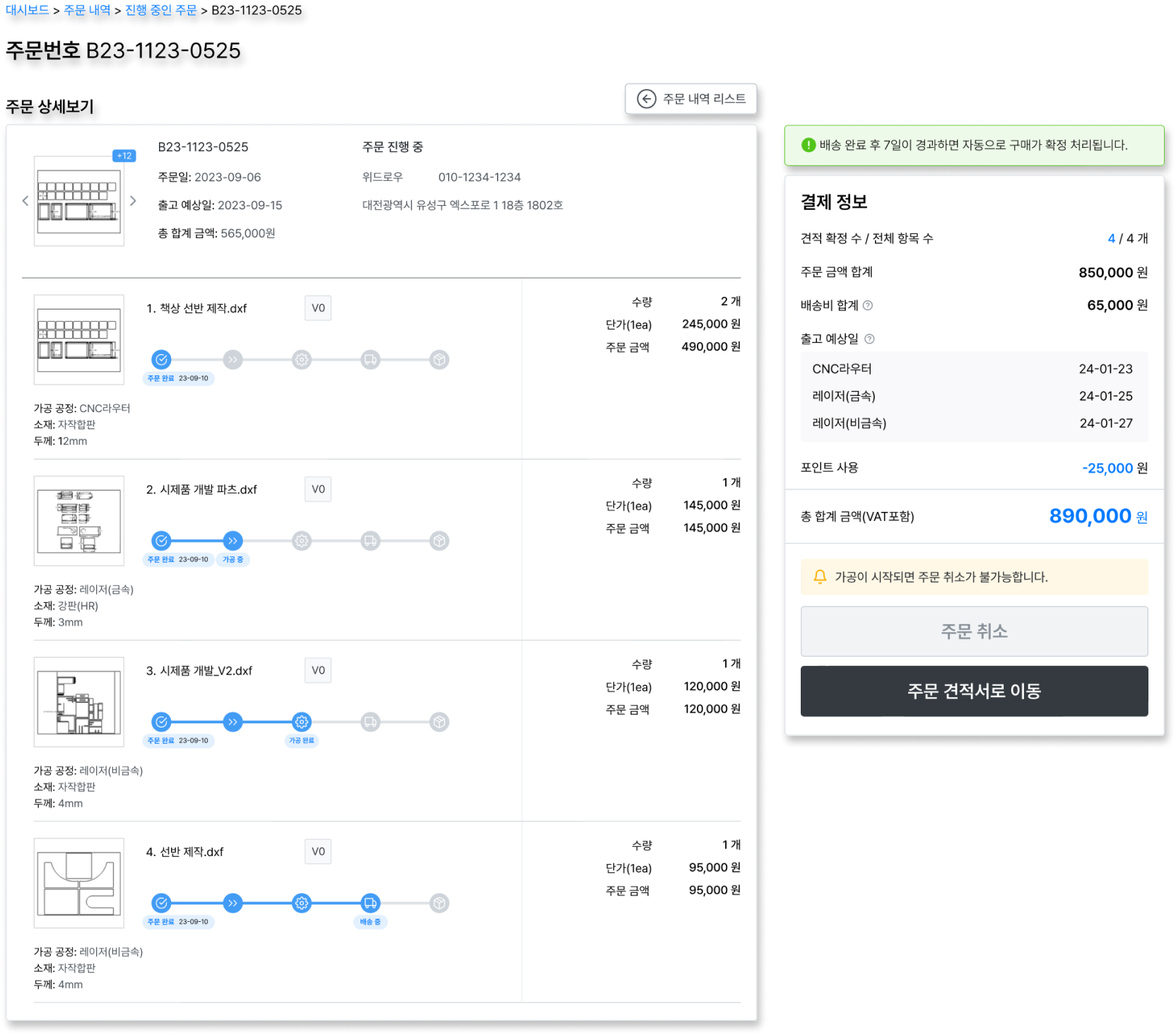 복잡했던 가공주문을 온라인에서 편리하게 진행 할 수 있습니다.